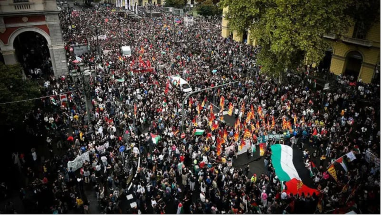 Italia fue atravesada por una jornada de decenas de miles de personas que se movilizaron en ochenta ciudades para denunciar el genocidio que el Estado de Israel perpetra en Gaza y en apoyo a la flotilla humanitaria Global Sumud, recientemente atacada en su último tramo hacia la Franja.