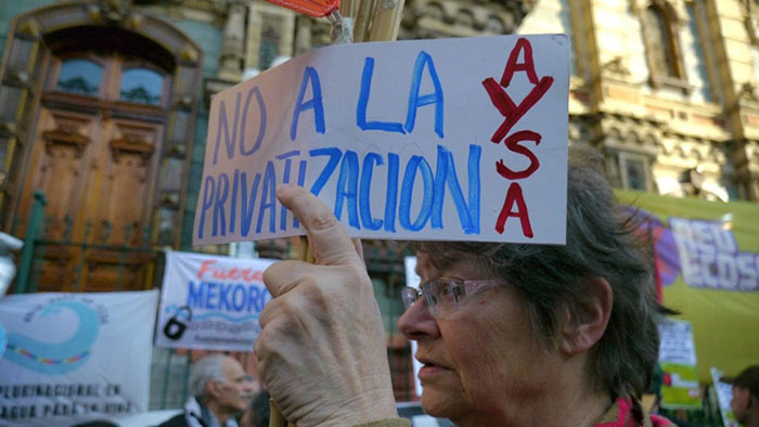 Se llevó a cabo el sábado pasado en el contexto de las acciones convocadas para decirle no a la privatización de la empresa que presta servicios de agua corriente y cloacas. “No a la privatización de todos nuestros recursos naturales”, dijo ahí la presidenta de la Federación de las Entidades Argentino-Palestinas, Tilda Rabi, y advirtió el papel que en esto puede jugar la empresa israelí Mekorot.