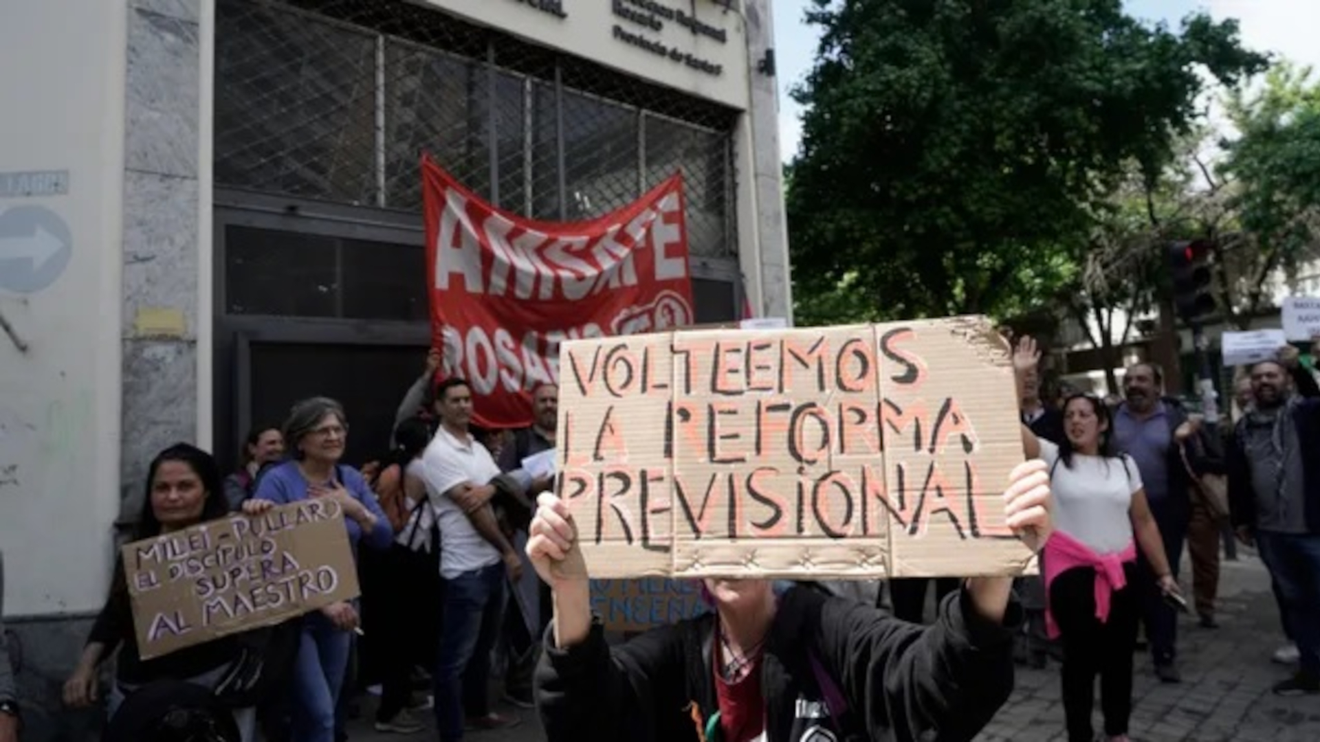 Docentes y trabajadores jubilados se pronunciaron en Santa Fe para exigir que la Corte Suprema provincial declare la inconstitucionalidad de la Ley 14.283 que impulsó Maximiliano Pullaro.