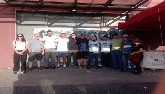 Los trabajadores resisten el intento de cierre de de la imprenta Anselmo Morvillo. Peligra la fuente laboral de más de doscientos operarios. “Muchas familias dependen del trabajo de la gráfica, estamos con ellos y vamos a estar todas las veces que sea necesario para que recuperen sus fuentes de trabajo”, recalcó en el lugar el responsable Sindical del PC, Emanuel Ríos.