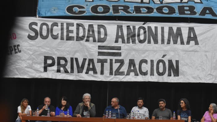 Con un contundente acto se dijo no al intento privatizador de Epec. Se prevé una jornada de movilización en Córdoba Capital. “Fue un claro mensaje que dice que no queremos que el gobernador remate el patrimonio provincial ni nos quite la soberanía energética a los cordobeses”, advirtió el secretario Sindical del PC provincial, Rodolfo Leyría.