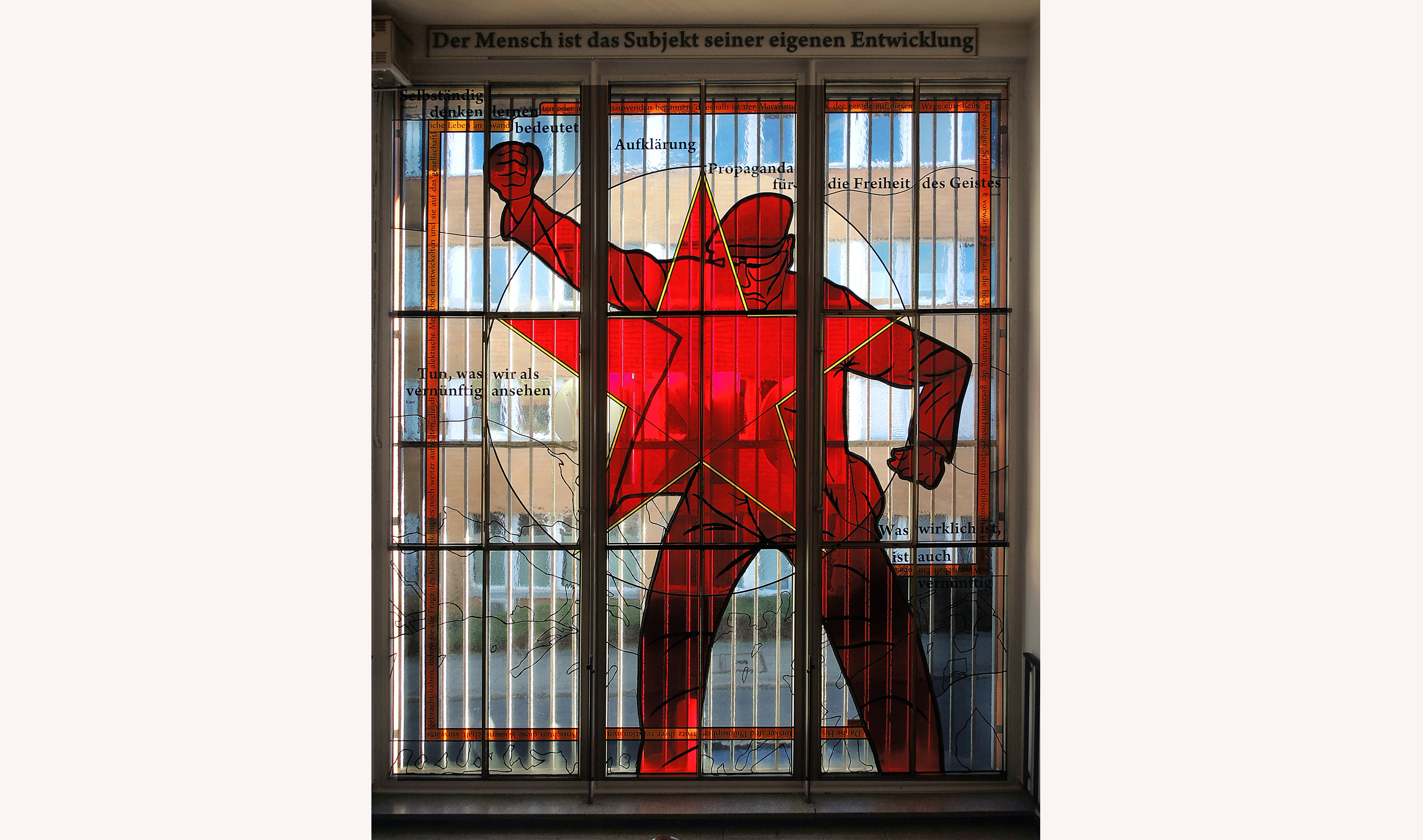 “Lenin usa una maestría histórica-dialéctica: Al reconocerle a la filosofía que es capaz de cambiar según conocimientos de las causas, según posibilidad y necesidad, según su libertad misma de expresión”, reflexiona Günter Pohl, autor de la trilogía filosófica Von der Ordnung der Welt (Acerca del Orden del Mundo, ver http://www.vdodw.de/), dirigente del Partido Comunista Alemán y creador del bello vitraux que es el que ilustra esta columna.