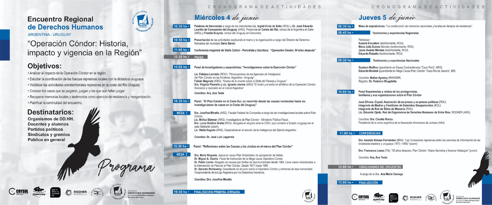Comienza mañana miércoles en Concepción del Uruguay y convoca a referentes y organismos argentinos y uruguayos para reflexionar y debatir acerca de lo que fue el Plan Cóndor y su vínculo con las nuevas formas de violencia institucional.