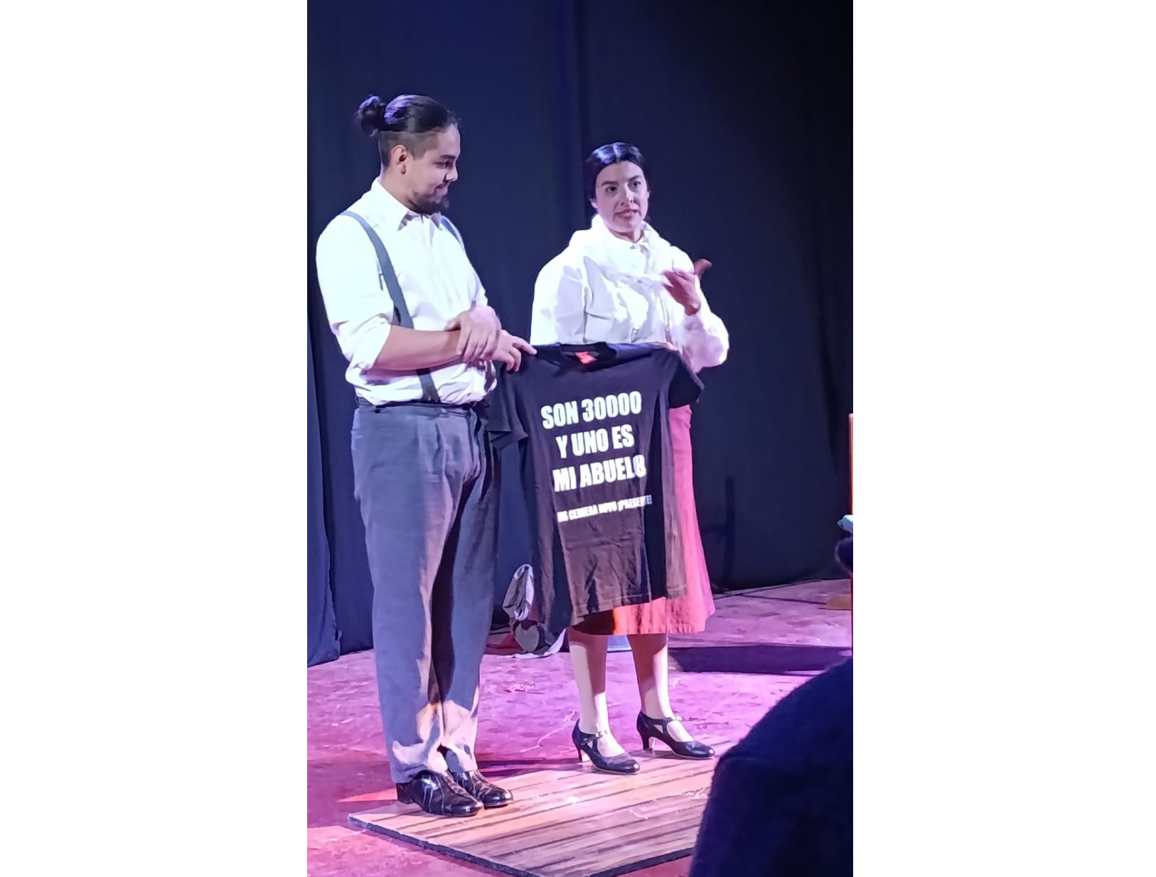 En la obra se plasma el homenaje a su bisabuela, a su abuelo Luis y a la búsqueda de Abuelas y Madres pero también se pone de relieve cómo han sido afectadas las familias por el plan sistemático de desaparición forzada de la última dictadura cívico-militar, reivindicada por el gobierno de Milei y Villarruel.