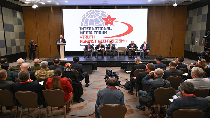 Los días 6 y 7 de noviembre de 2025 se celebró en Moscú el foro internacional de medios "La verdad contra el neofascismo", organizado por el PCFR, en el que participaron delegaciones de más de 40 países de Europa, Asia, África y América Latina. En este marco estuvo presente el PCA a través de su secretario de Propaganda, Emiliano Vazquez. Reproducimos en esta nota el comunicado publicado recientemente por sus organizadores, donde se destaca como “principal arma en la lucha ideológica contra la propaganda occidental, la solidaridad del movimiento de izquierda mundial y la creación de un sistema unificado de trabajo de información de las fuerzas de izquierda”.