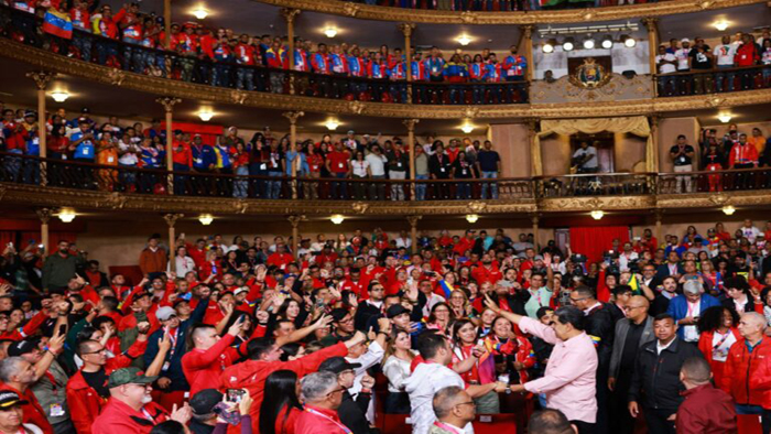 Por su parte, en el Teatro Municipal de la capital venezolana, el presidente Nicolás Maduro se dirigió a los presentes y recalcó que el congreso debe tomar tres tareas fundamentales: “consolidar la capacidad de gobierno para resolver los problemas del pueblo sin detener la gestión gubernamental, fortalecer el Poder Popular y las comunas y