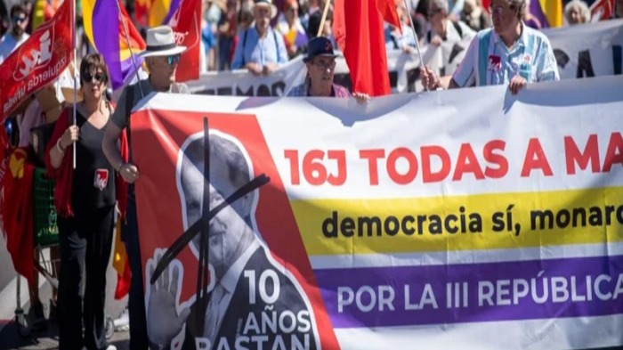 A casi diez años de la coronación de Felipe VI, las calles madrileñas fueron escenario de una multitudinaria manifestación para pedir que España vuelva a ser una república.