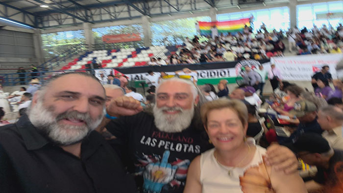Cristian Poli, delegado del Partido Comunista de la Argentina a la III Cumbre Social de los Pueblos de América Latina y el Caribe, junto a Roberto Baradel, Secretario General del Suteba, y a Gloria Inés Ramírez, dirigente del Partido Comunista Colombiano y ex Ministra de Trabajo de Colombia