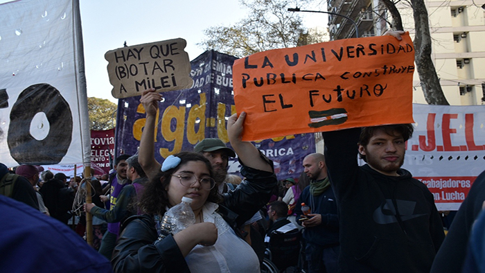 “Con el gesto inconstitucional que tuvo este gobierno con la Ley de Discapacidad, vemos que su intención es invisibilizar la Ley de Financiamiento para la universidad, pasando por arriba de la decisión del Congreso”, afirmó desde el MUI Uma Rey. Y agregó que esto “es algo que gravísimo porque se trata del Ejecutivo desoyendo lo que le ordena el Legislativo”, quien es consejera departamental de la Facultad de Ciencias Sociales en la Universidad Nacional de Quilmes (UNQui) por el MUI, que el jueves de la semana pasada de la se movilizó con sus banderas y reivindicaciones hasta Plaza Congreso para reclamar por el rechazo al veto y la aplicación efectiva del financiamiento.