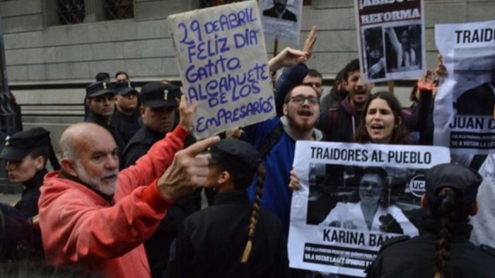 Pero más allá de esto, desde ayer en las adyacencias del Congreso hubo fuerzas populares que movilizaron para fijar su postura respecto de lo que pasaba puertas adentro, entre ellas el Partido Comunista. “Repudiamos y lamentamos que las consecuencias que va a traer si avanza este proyecto, sólo serán agravar una situación que ya es terrible para millones de trabajadores”, puntualizó Micheli y añadió que “lo que nos queda es organizarnos en la resistencia a estas nuevas medidas que derivan del Proyecto Bases 2, que vienen a ponerle nombre a mucho de lo que ya está aplicando el gobierno nacional”.