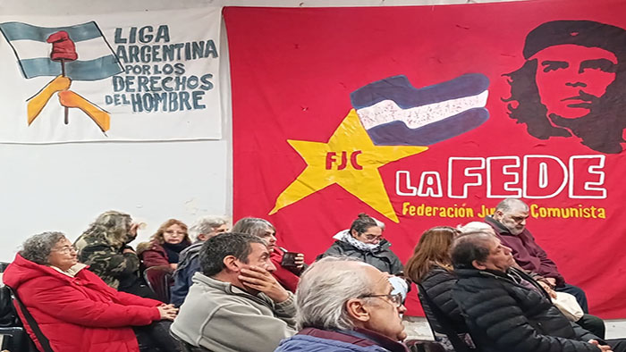 Con este telón de fondo, el secretario del PCA sostuvo que en nuestro país, “así como no vacilan en desguazar al Estado, pegarles a los jubilados y permitir una base yanqui en Ushuaia, tampoco vacilan en proscribir a una figura política importante para Argentina como es Cristina Fernández de Kirchner, una persona con la cual seguramente tenemos muchísimas diferencias, pero consideramos que es totalmente injusto que ella esté pagando con la proscripción y con el peligro de que se aplique una condena que la Corte le ha impuesto con el mecanismo de lawfare, que es el que le han impuesto en su momento a Rafael Correa, a Lula, a Lugo y a tantos otros gobernantes que no son del agrado de los EE.UU.”