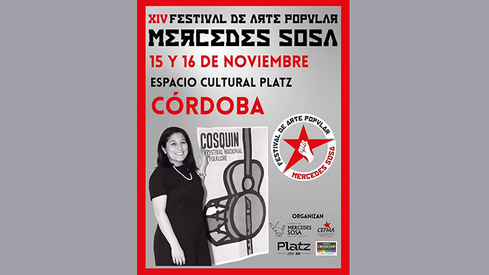 Este fin de semana tendrá lugar en la ciudad de Córdoba el XIV Festival de Arte Popular Mercedes Sosa, en el Espacio Cultural Platz. El encuentro se enmarca en las celebraciones por el 90° aniversario del nacimiento de nuestra querida Negra, que a lo largo del año han venido desarrollándose, entre otros escenarios, en la Casa de la Cultura Comunista y el Centro Cultural del Cooperación Floreal Gorini.