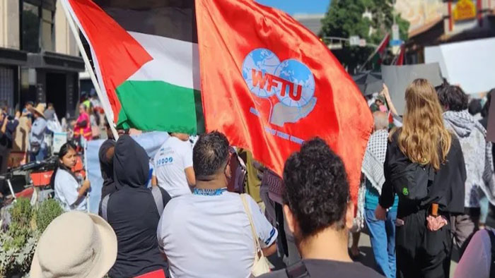 La convocó la Federación Sindical Mundial,  que hizo hincapié en que “el heroico pueblo palestino no está solo en su lucha”, ya que “los afiliados y amigos de la FSM seguimos en primera línea para fortalecer y reforzar la solidaridad”.