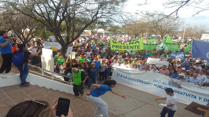 La Asociación de Maestros y Profesores de La Rioja participó ayer del capítulo local de la Marcha Federal Universitaria e instaló una radio abierta en la histórica Plaza 25 de Mayo.