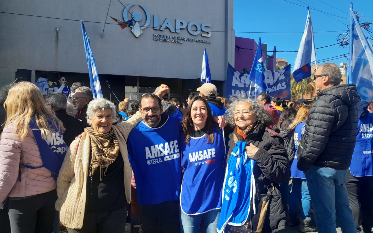 Los docentes agrupados en Amsafé se movilizan en la ciudad de Santa Fe contra el vaciamiento del Instituto Autárquico Provincial de Obra Social y lanzan diferentes acciones contra el ajuste que lleva a cabo el gobierno provincial.