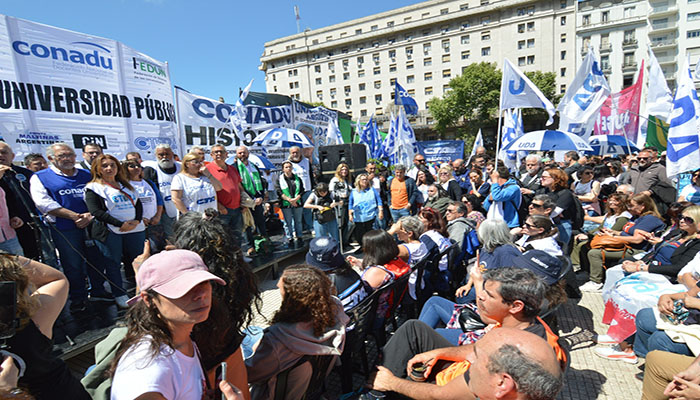 Al respecto, por medio de una declaración el frente que integran las dos Conadu, Fagdt, Ctera, Fedum, Fatum y UDA hizo público su repudio a los legisladores “que votaron en contra del mandato popular de defender la universidad”, tras lo que advirtió que “la democracia ha cedido al manejo antirepublicano de gobernar por decreto del gobierno nacional” y que quedó conformada “una alianza política que es incapaz de conmoverse ante el sufrimiento de las grandes mayorías, ante el reclamo de todos los sectores por sostener aquello que es fundamental: la universidad pública, la educación pública”.